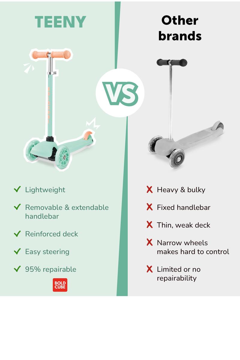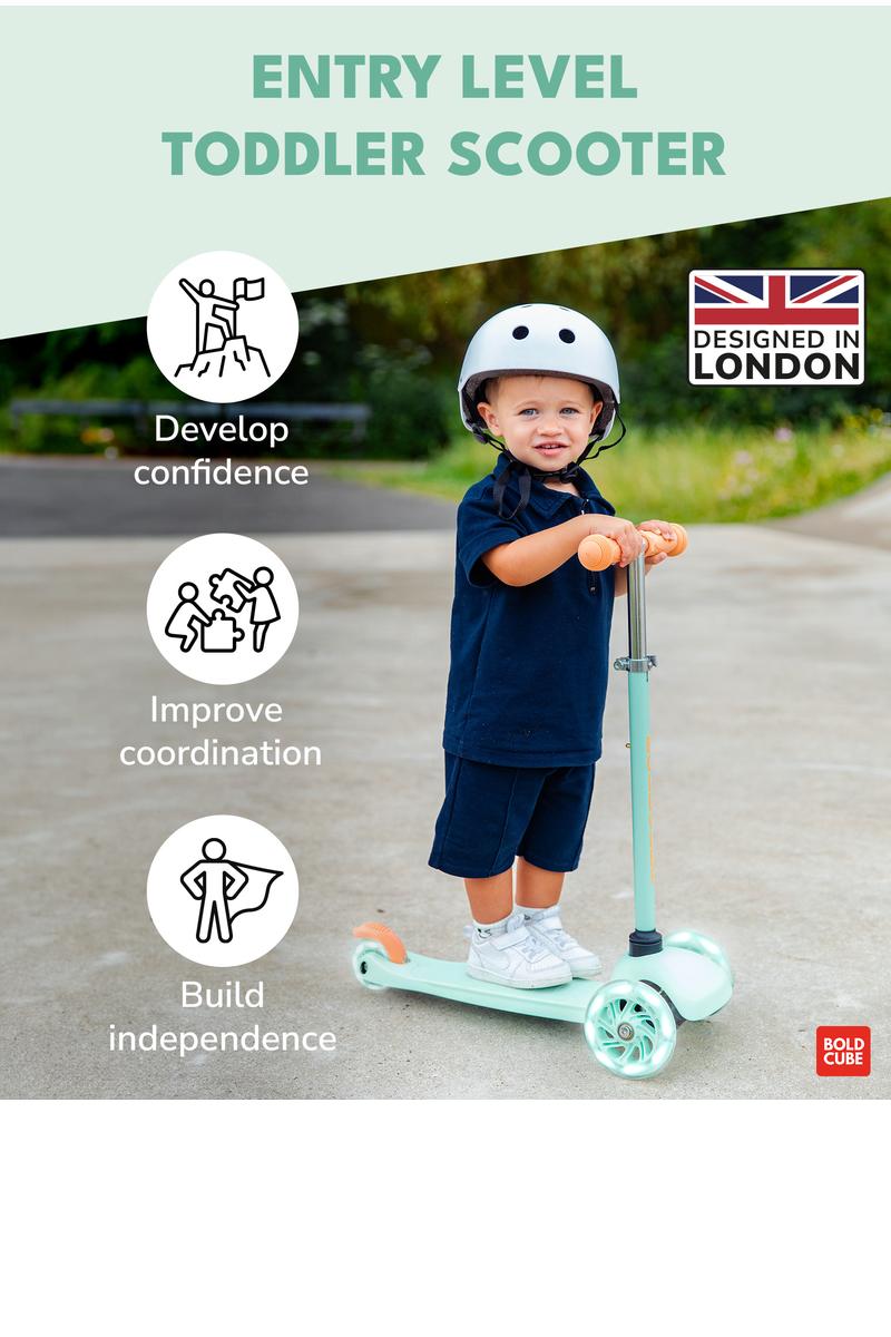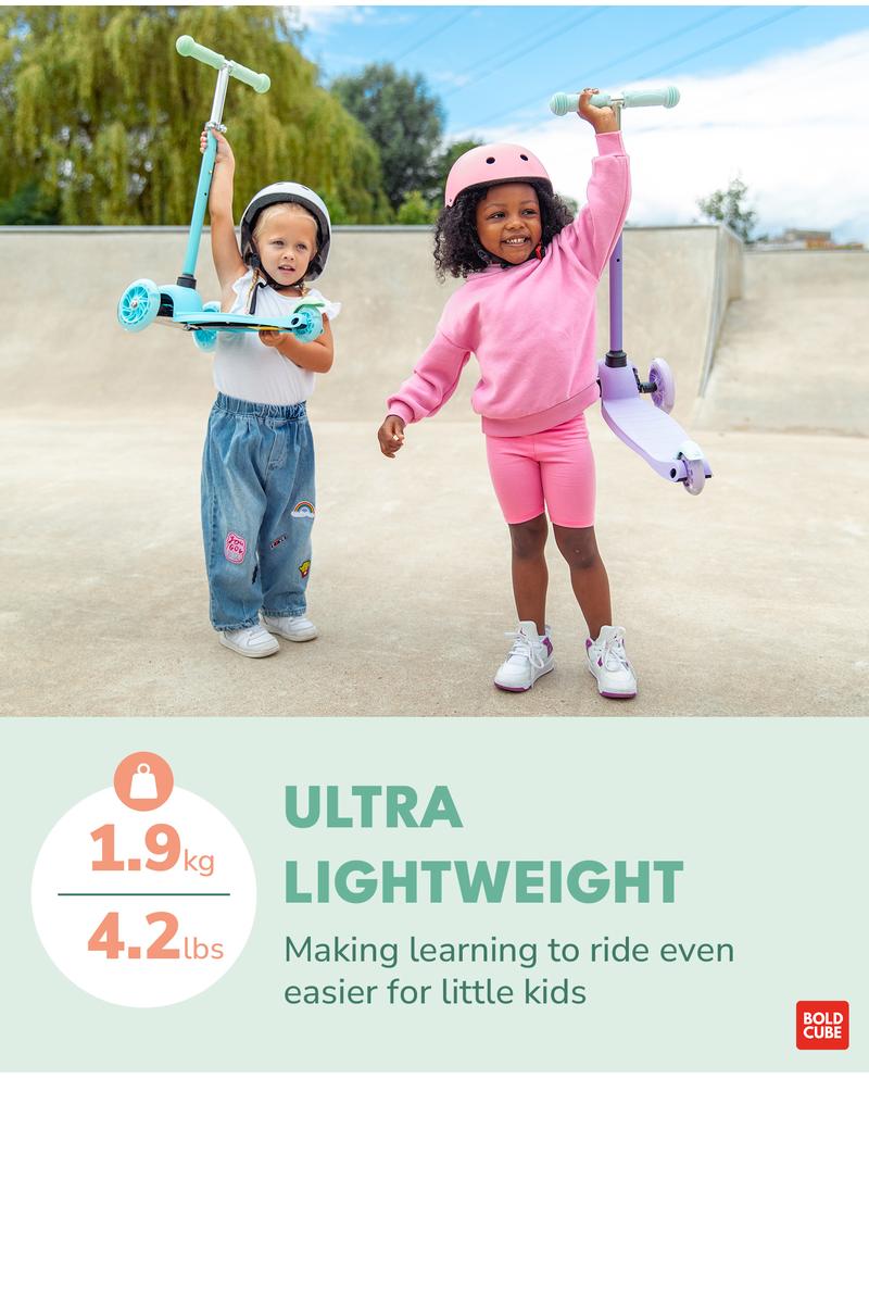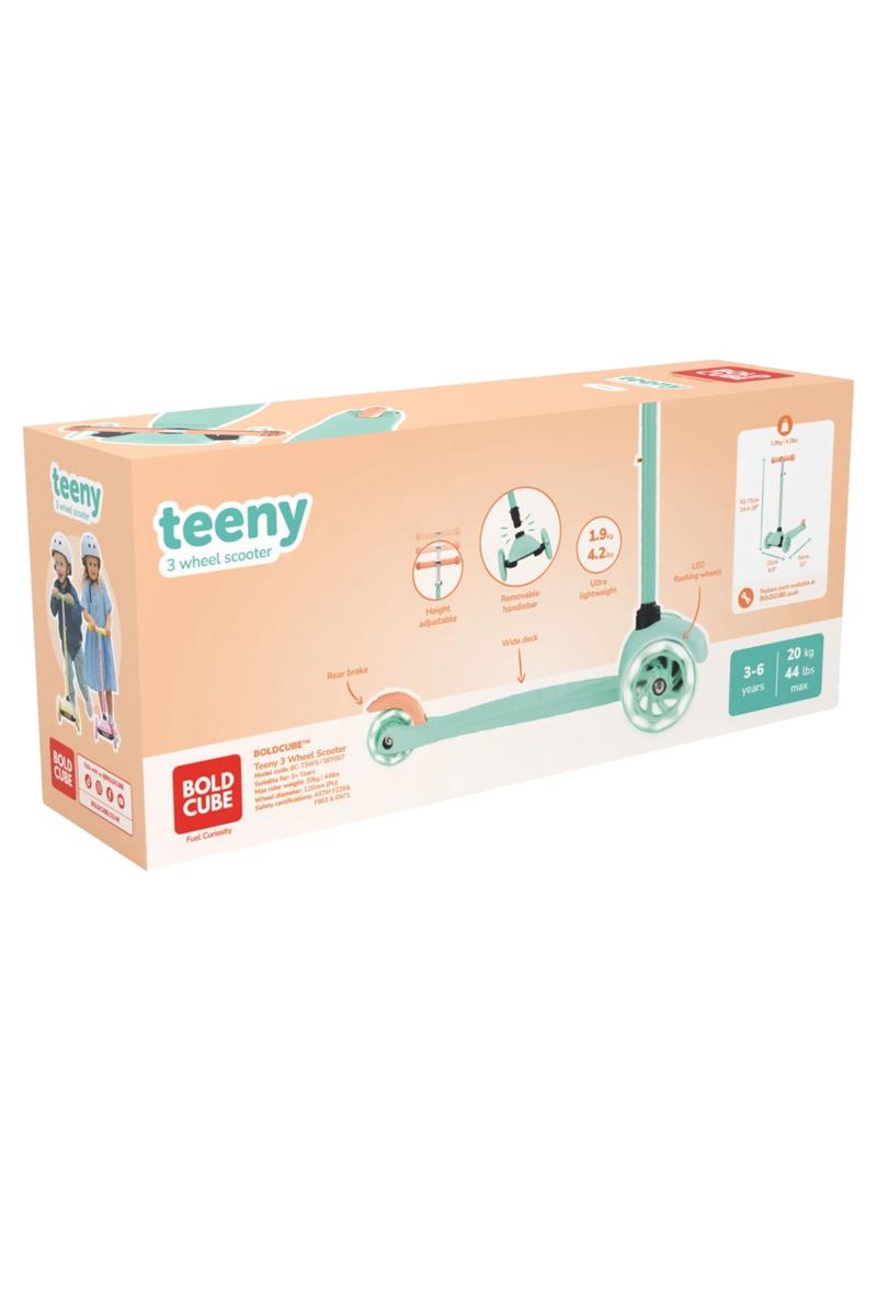 The BOLDCUBE Teeny 3 Wheel Scooter is designed as a starter scooter for younger riders who are just getting comfortable with movement, balance, and coordination. Its three-wheel, self-balancing design offers added stability, while the lightweight frame makes it easy to maneuver both at home and outdoors. With a clean, modern look and soft pastel colorways, Teeny scooters are built to grow confidence while encouraging active play.