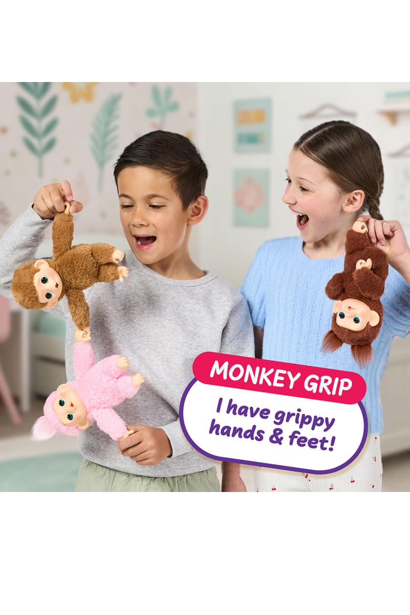Little Live Pets™ My Baby Monkey Minis are small, interactive plush with big reactions. These soft monkeys respond to touch with 20+ sounds, including a thumb-in-mouth feature that triggers baby-like reactions kids will keep coming back to.