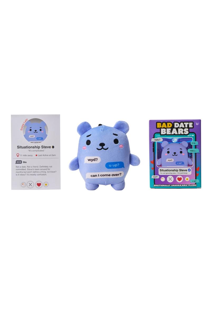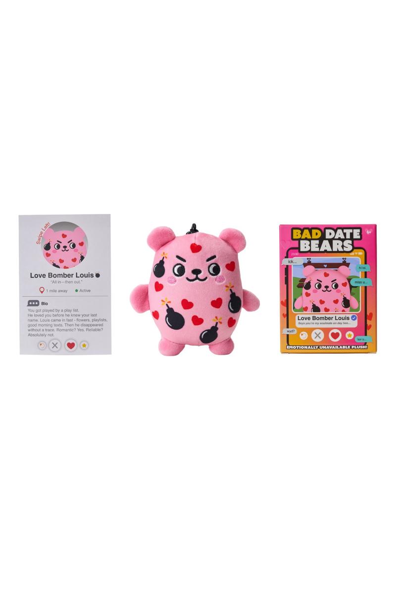 Meet Bad Date Bears™—the plush line turning dating red flags into must-have impulse buys. Inspired by dating app culture and viral relationship drama, each 4.5” clip-on features a bold personality, hilarious backstory, and swipe-style packaging that makes shoppers stop, laugh, and grab one.