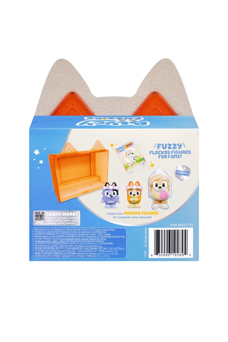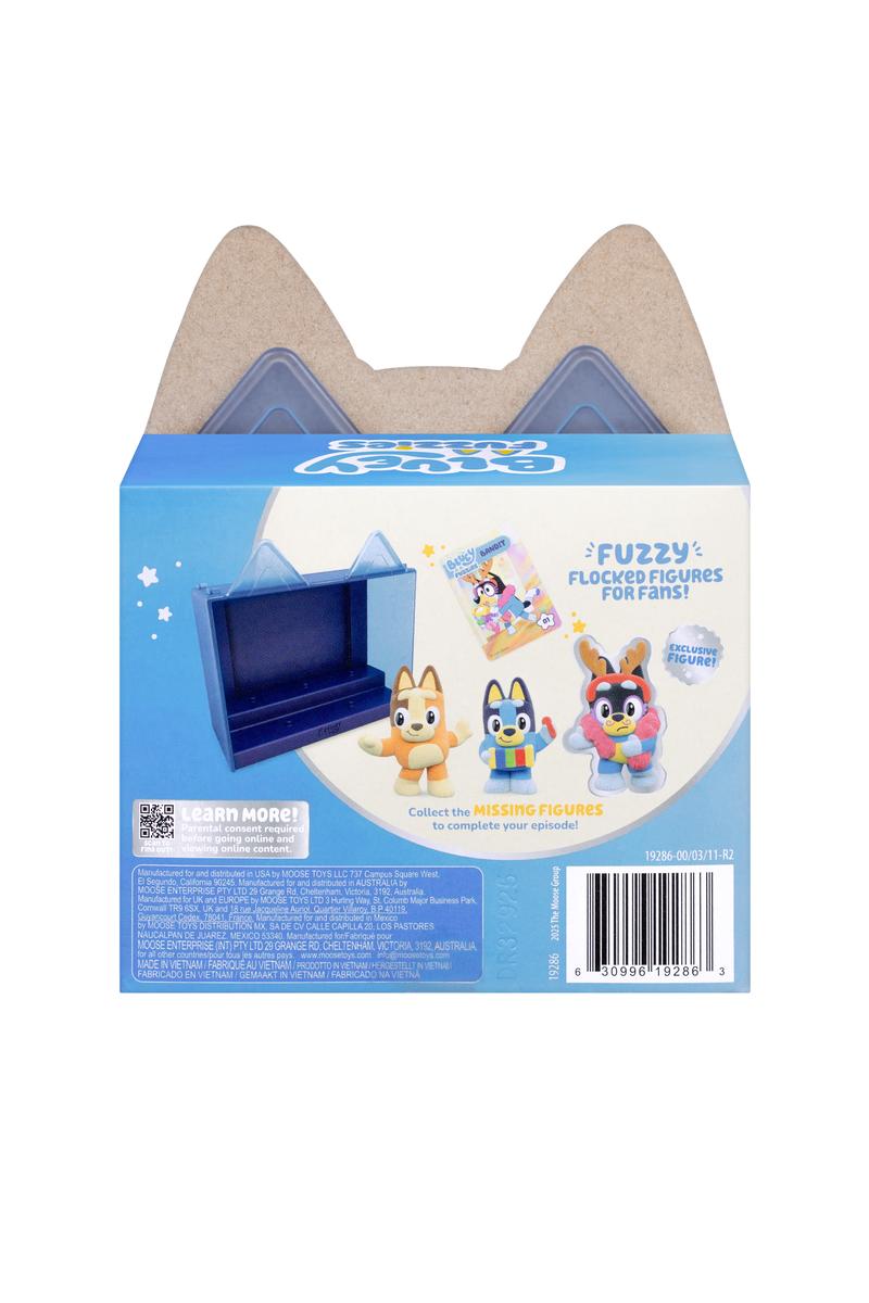 Bring the world of Bluey to life with the Bluey Fuzzies Episode Pack Assortment! Each pack features soft, flocked mini figures inspired by real episodes from the show, paired with a themed display case that recreates the scene. These collectible sets are made to play with, display, and stack together for easy storytelling right on the shelf.