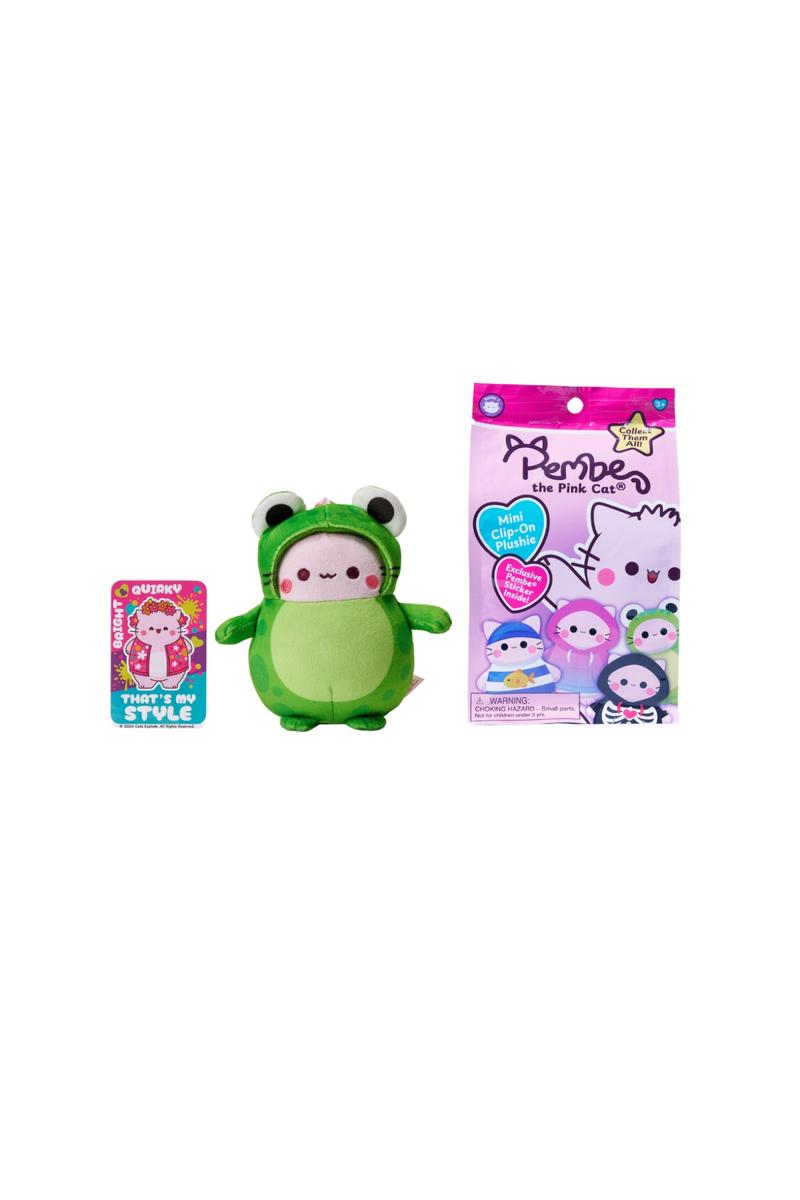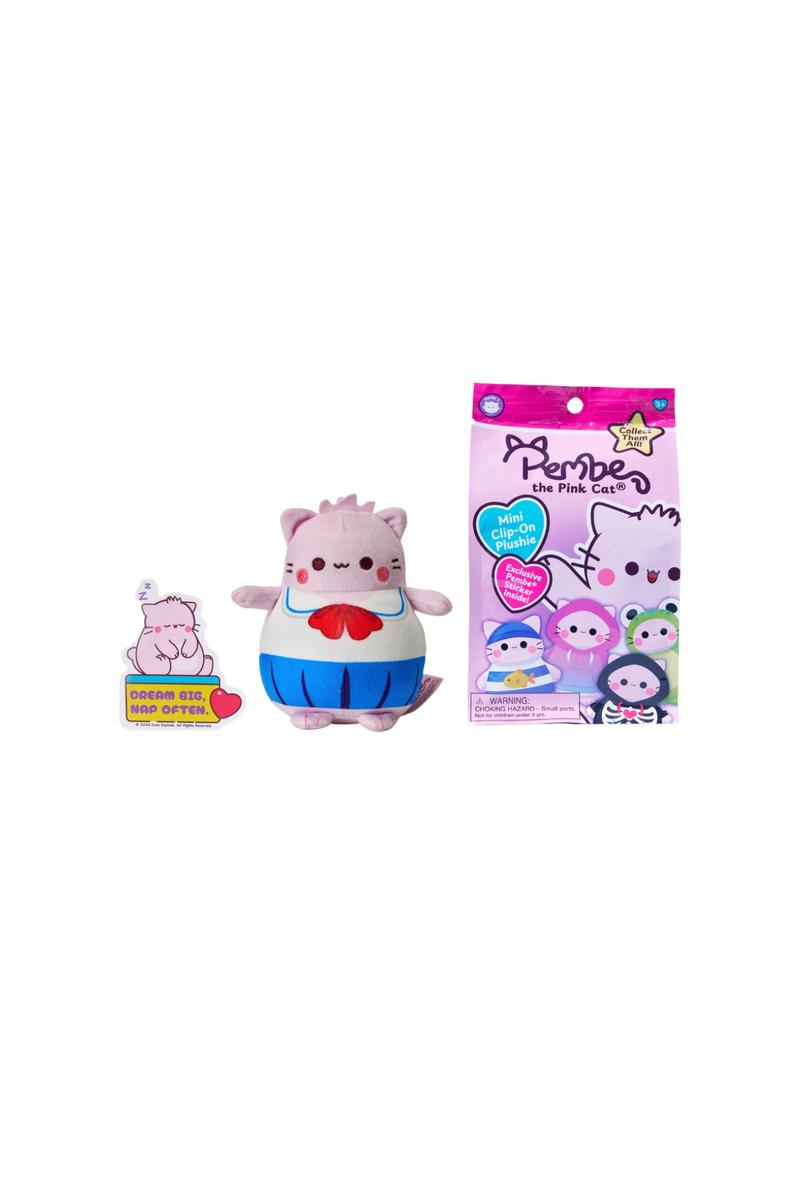 Meet Pembe the Pink Cat™, a digital-first character brand built around positivity, kindness, and feel-good moments. With billions of GIPHY views and millions of daily shares, Pembe is widely recognized across social platforms for comforting, cheerful expressions people love to share. These 4” Mini Clip-On Plushies bring that viral charm to shelf in a fun, collectible format, featuring Pembe in playful outfits designed for clipping, carrying, and collecting.