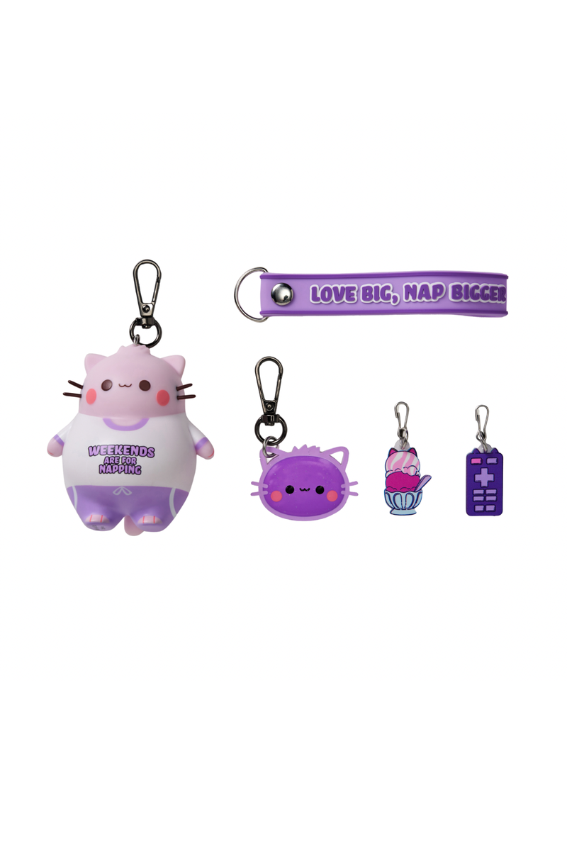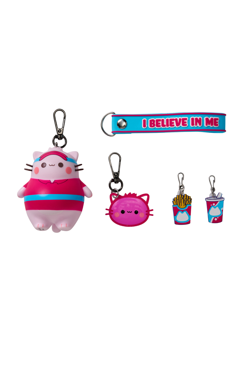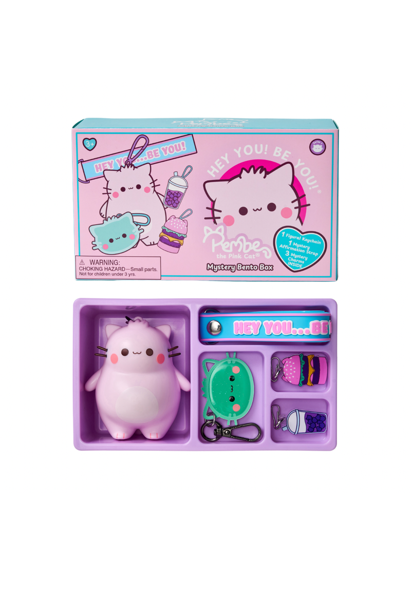 Meet Pembe the Pink Cat™, a digital-first character brand known for positivity, kindness, and feel-good moments shared across social platforms. The Pembe Mystery Bento Box puts a fresh twist on collectibles with a bento-style tray that neatly holds a Pembe figurine keychain, an affirmation strap, and mystery charms—each designed to clip, swap, and style in different ways.